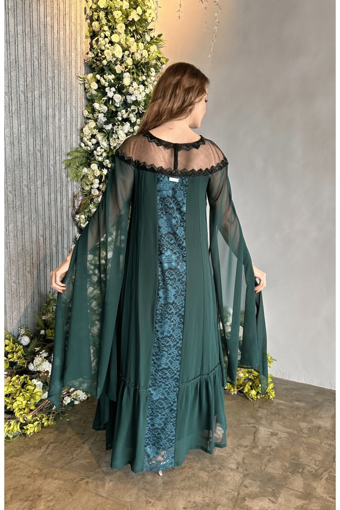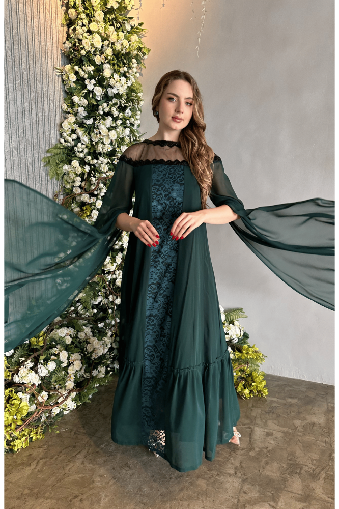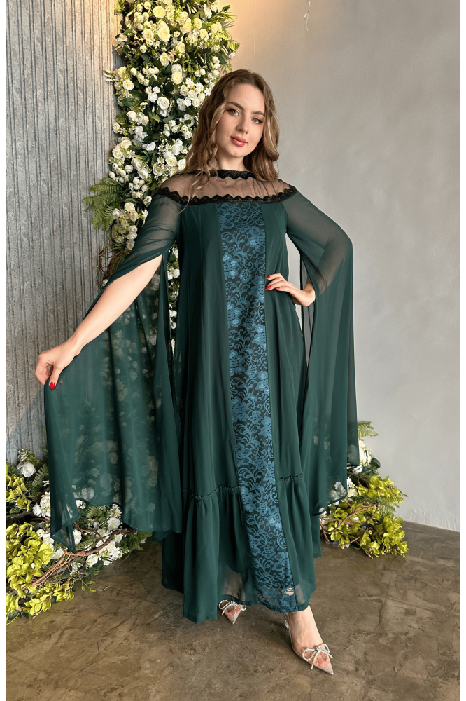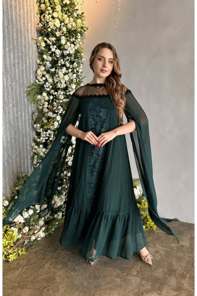 تمتعي بالفخامة والأناقة مع جلابيه من الطراز الرفيع صممت بإستعمال أرقى الأقمشة, بمكس خامات شيفون اسود مشجر ودانتيل فاخر مشغول شك راقي مع حزام مخفي اختياري - لإطلالة فخمة. مصممة لتجعلك تشعرين وكأنك ملكة في كل مرة ترتدينها.