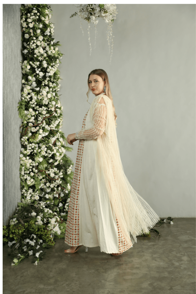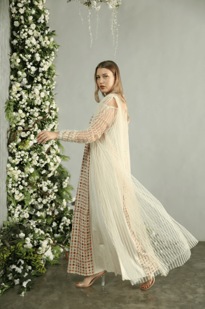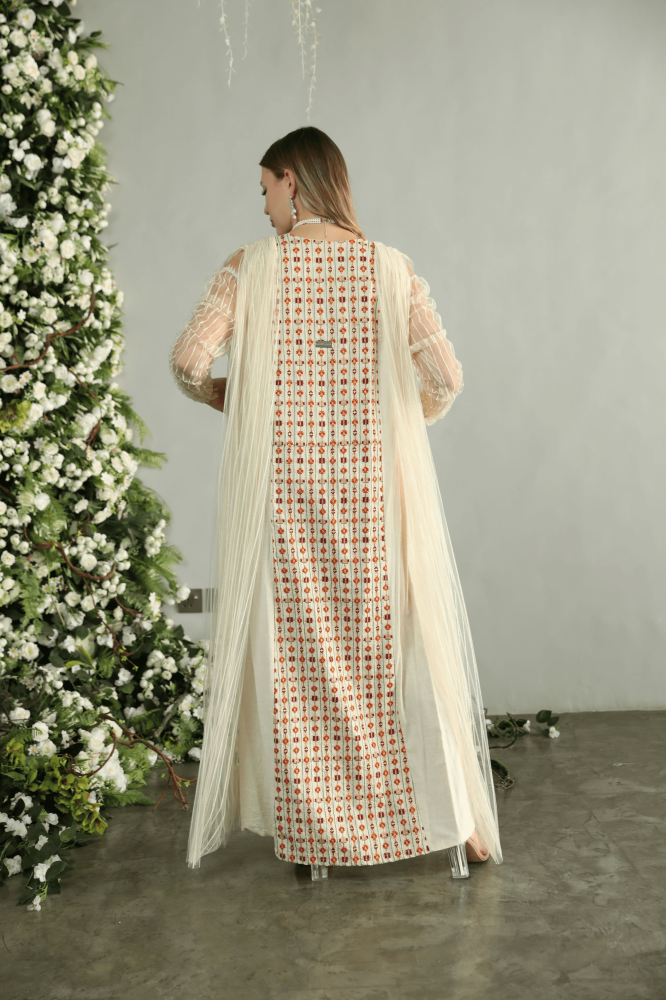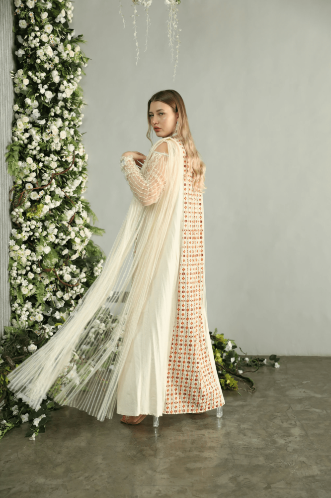 جلابيه لاطلاله جذابه بمكس خامات فاخره تول مقلم زري ولينن مشغول تطريز وبتصميم اكمام تول مكشوف الكتف