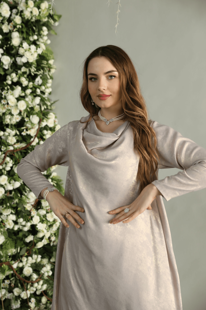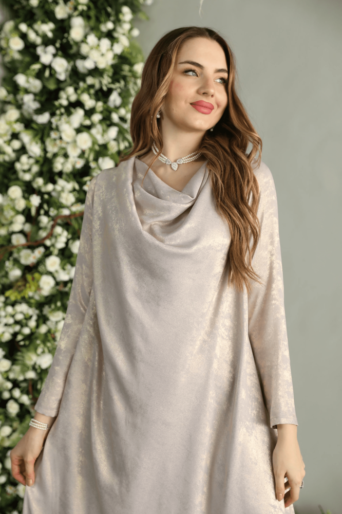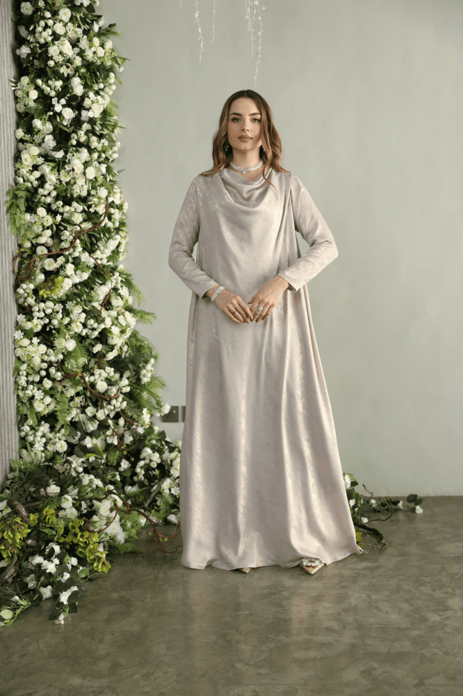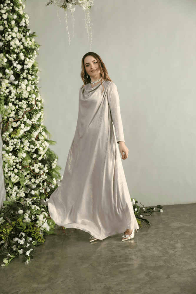 جلابيه لاطلاله راقيه بخامة كريب حرير ميتالك تصميم ناعم وراقي باللون الموف