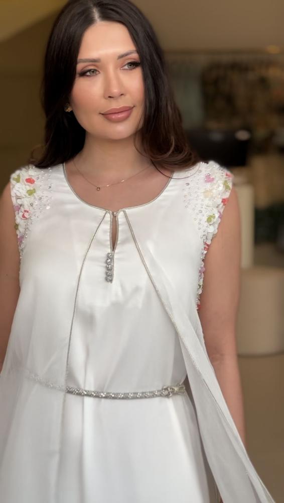 جلابيه مناسبات لاطلاله جذابه بخامة شيفون مشغول شك بقيطان فضي مع حزام
