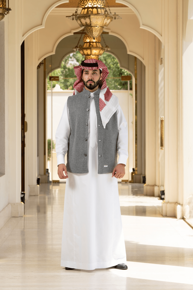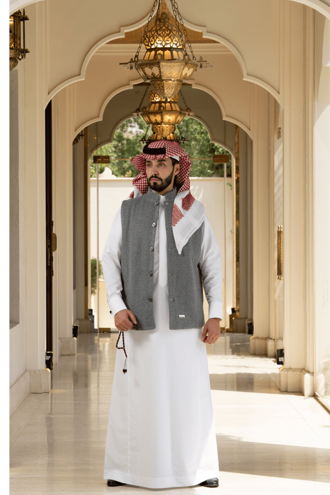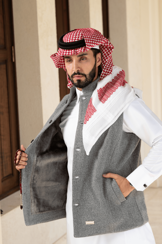 سديري جوخ ساده -اللون رمادي مبطن فرو رمادي