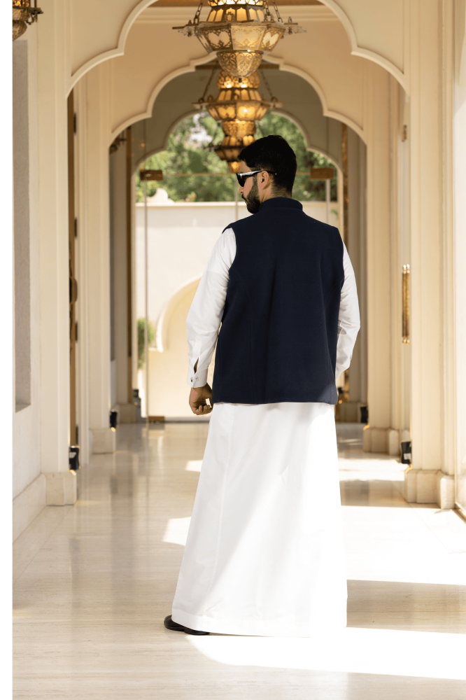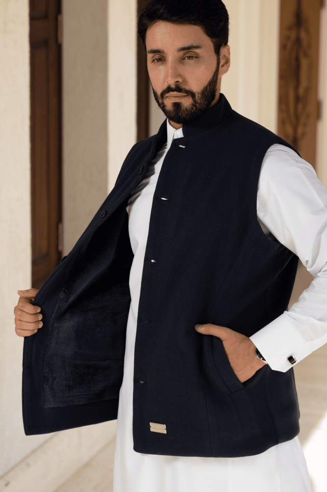 سديري جوخ ساده اللون كحلي - مبطن فرو كحلي