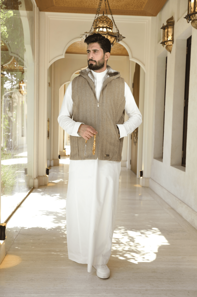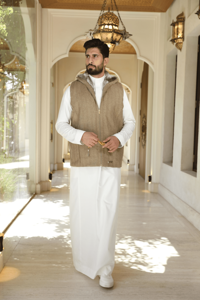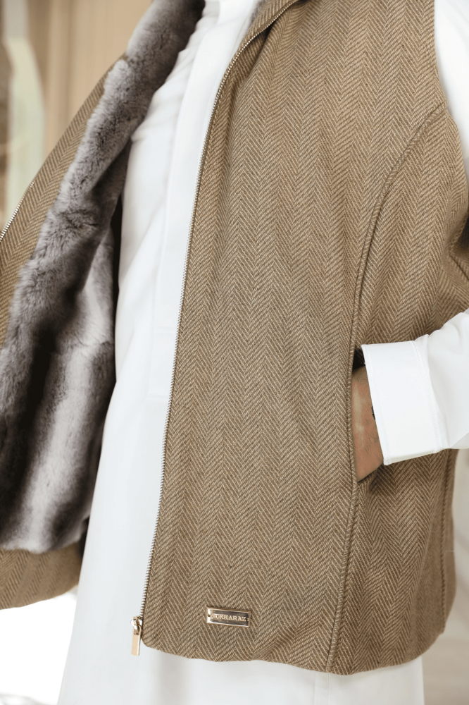 سديري رسمية بخامة الكشمير الفاخر وبلون بيج مبطن بفرو أرنب الريكس الحقيقي ستايل شانشيلا ناعم ودافئ وسميك