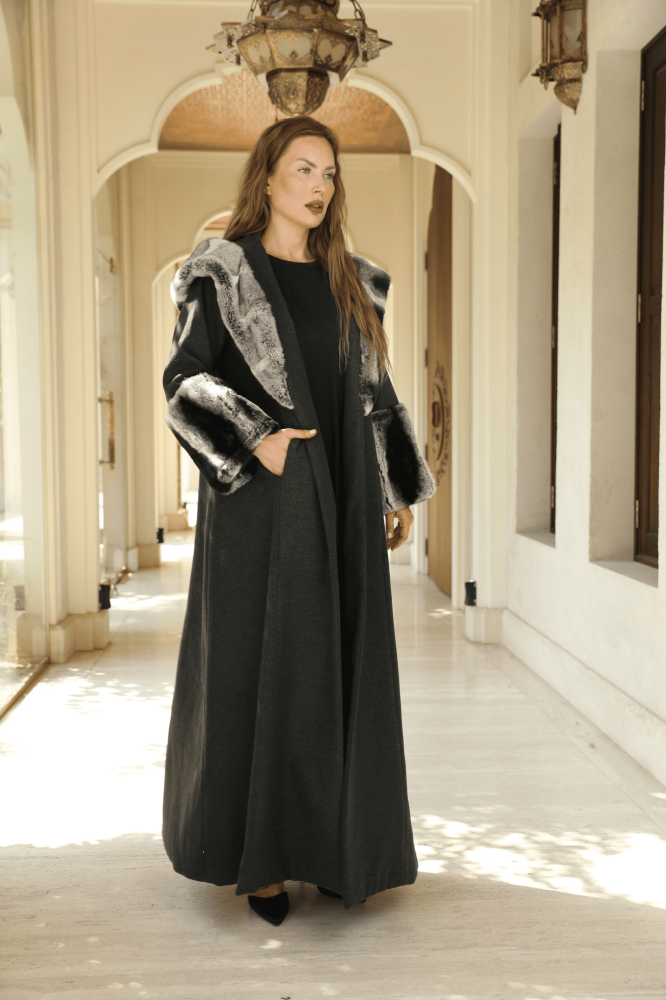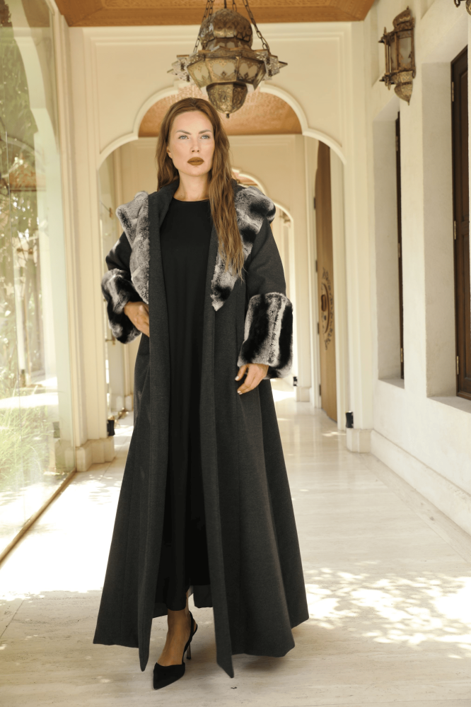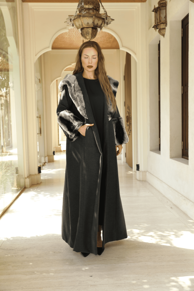 فروه/ عبايه ستايل تصميم عصري بخامة جوخ فاخره وباضافات فرو ارنب الريكس الحقيقي ستايل شانشيلا ناعم ودافئ وسميك